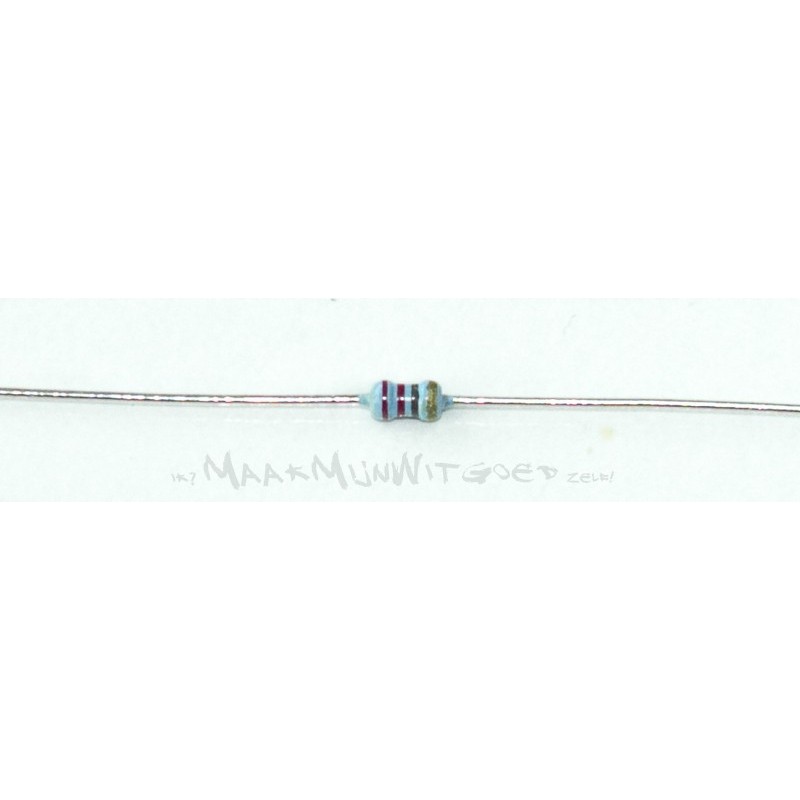 Kwaliteits weerstand van 220 Ohm (±5%, ±100ppm/°C) en een standaard 'power rating' van 0,5W.