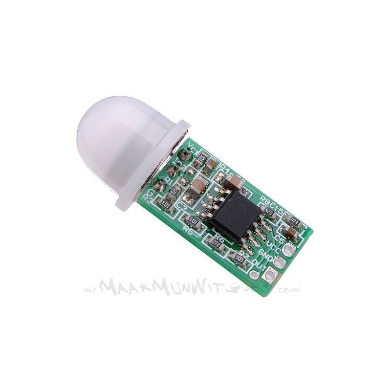 Kleine infrarood sensor met een bereik tot ongeveer 3 meter. Deze sensor werkt van -20 graden Celcius tot +70 graden Celsius dus bijvoorbeeld prima geschikt voor toepassingen in de tuin.